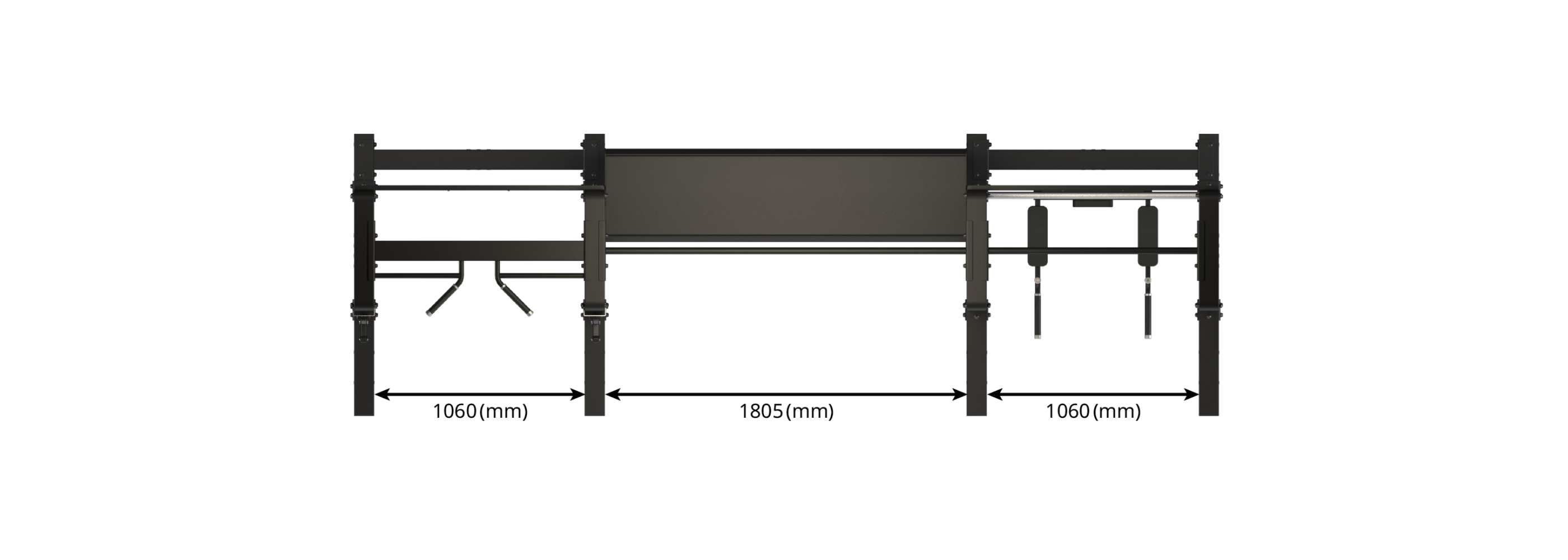 The centre storage unit is available in two lengths (Compact vs Wide) to suit any space and is ready to hold weight plates, dumbbells and other accessories on a flat shelf.