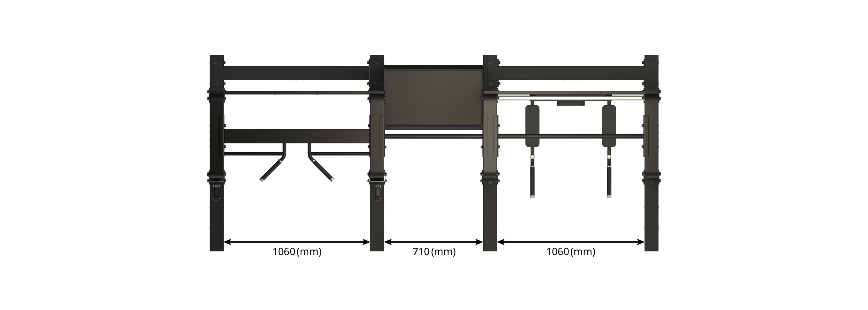 Finally, the second stall bars section has been designed for maximum versatility. It has wall bars, a captains chair (dip bars and leg raise machine) and additional pull up bars.