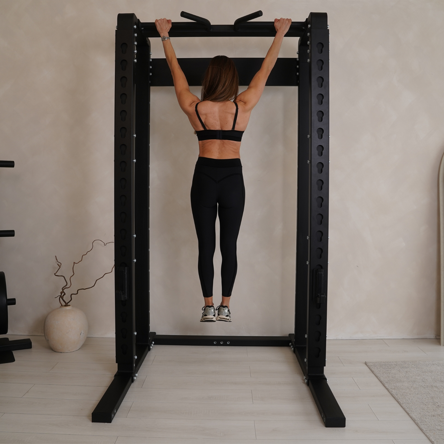 The rack comes with a standard straight pull-up bar, but for those who prefer more variety, we offer a multi-grip pull-up option to enhance your upper body training.