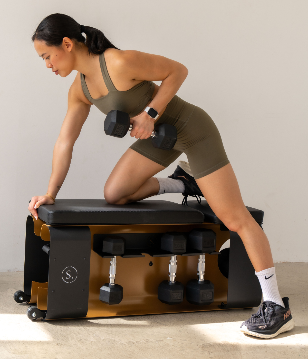 The Solo Signature Storage Bench combines luxury design with smart storage, featuring a curved steel frame and built-in space for dumbbells and kettlebells. With a three-position incline backrest and a flat bench alternative, it offers versatility for any workout. Available pre-equipped with weight sets, it’s built for durability with a lifetime home warranty on the frame.